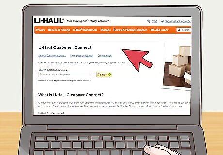 Visit the U-Haul message board. While the company would prefer to sell its moving boxes, it has set up an online message board where customers might be able to find free boxes. Go to www.uhaul.com/exchange and type your location into the search box. See if there is any post on giving away free moving boxes. You can also make your own post for free.