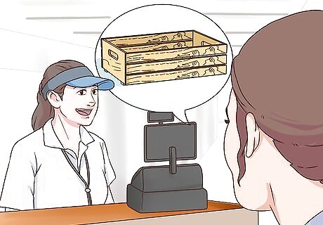 Visit grocery stores for wooden boxes. Most stores want to get rid of their boxes since they occupy space. At a grocery store, you have a good chance of finding wooden grocery boxes, as well as cardboard boxes. For example, apple crates are sturdy, and can help you move heavy or fragile items. Avoid vegetable pallets since you wouldn’t be able to fit much into them.
