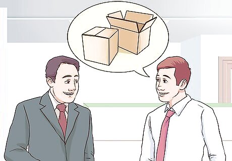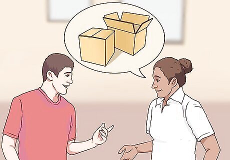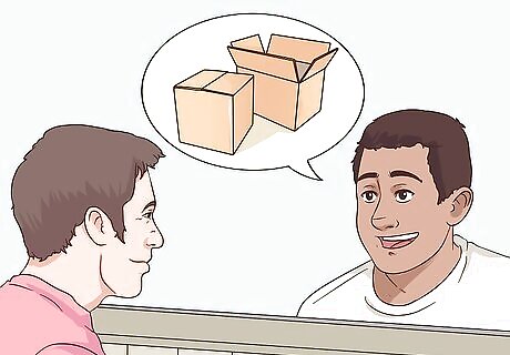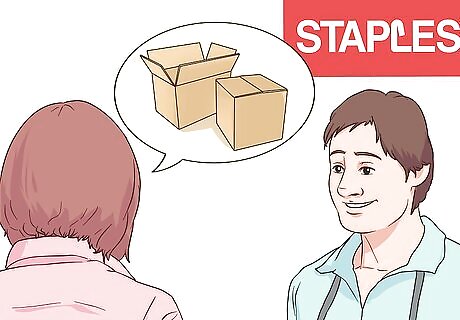 See if your office has any spare boxes. Companies often receive many deliveries every day, most of which come in boxes. Talk to your co-workers, and look around your office to see if there are any free boxes. You can also talk to people who deal with supply orders, and ask if they can reserve a few boxes for you at the next delivery.