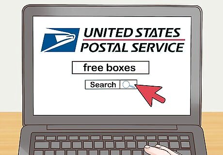 Have US Postal Service (USPS) mail you free boxes. Check the USPS Mailing Supplies page for free or cheap deals on mailing boxes. You will need to make an online account to order, which is free. Simply type “free boxes” in the search box, and make your order. The number of free boxes one person can receive is limited, so if you need many, this might not be the best option. USPS typically takes 3 to 5 days to ship boxes.