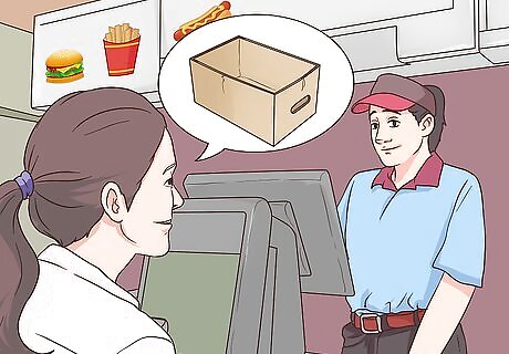 Get fry boxes from fast food restaurants. Fry boxes can be very versatile for hauling heavy items like books in small amounts. Ask your local McDonald’s or Burger King if they have any extra fry boxes. Since the fries are carried in frozen form, you don’t need to worry about the smell or grease.