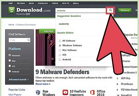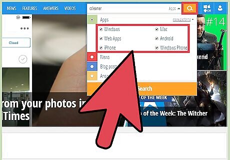 Select the platform of the software and its relevant keywords and hit the magnifying glass icon to search for the right program on Softonic.