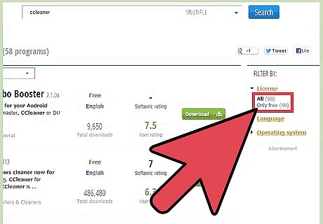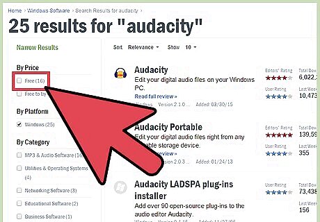 Go to the CNET Downloads homepage. This website offers free as well as demo (free trial) and retail software so you must filter your options to show only free programs.