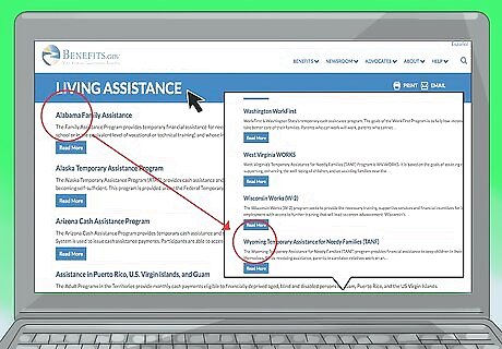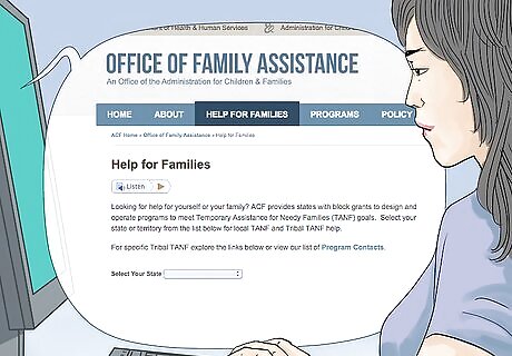 Apply for the Temporary Assistance for Needy Families (TANF) program. The TANF program is designed to provide temporary financial assistance to needy families. The program provides grants to cover basic family needs like food and housing. Cases are evaluated on an individual basis, so everyone's experience will vary. You can click here to access a list of services offered by individual states. Alternatively, you could call (202) 401-9275 to get further information about the TANF program.