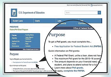 Fill out the Free Application for Federal Student Aid (FAFSA). The federal government offers a number of subsidized loans and scholarships through FAFSA. Click here to make an account and fill out the application for federal aid.