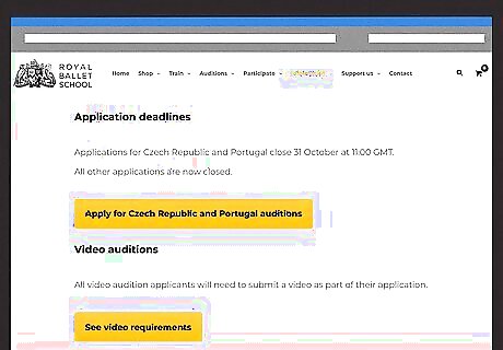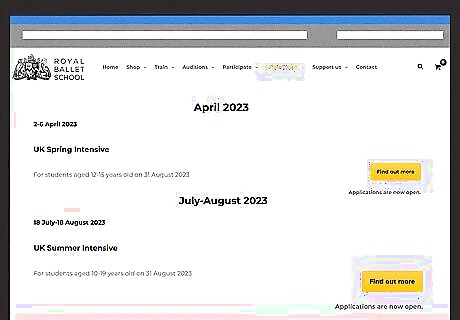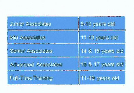 Determine which cohort you fit into. Your age as of August 31 is what determines your cohort. Those between eight and eleven apply for the Junior Associates; those between eleven and thirteen apply for the Mid Associates; those between fourteen and fifteen apply for Senior Associates; and those between sixteen and seventeen apply for Advanced Associates. These classes are meant to supplement existing ballet classes. Junior Associates (eight through ten years old) is located at eight centers throughout the UK. Mid Associates (eleven through thirteen years old) is located at five centers throughout the UK. Senior Associates (fourteen and fifteen year olds) only has training locations in London and Birmingham. Advanced Associates (sixteen and seven year olds) are trained solely at the Covent Garden location. Full-time training is also available to those between the ages of eleven and nineteen. Students sixteen and under attend the campus in Richmond Park. Older students attend the Covent Garden campus.