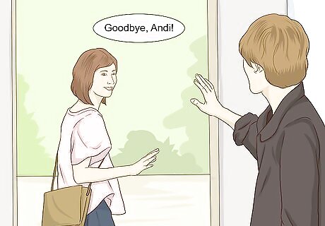 Say goodbye on a kind note. Even if the person was totally boring, there's no reason to be rude if the person was trying to be nice. Compliment the person, say it was nice talking to him or her, or say that you're glad to have met. This is just a part of being polite and you don't have to feel bad if talking to the person was actually about as enjoyable as watching paint dry. It won't hurt you to be nice to the person. The only reason you shouldn't be is if the person just won't leave you alone; in that case, you should politely explain that you don't have much time and wanted to catch up with a few other people. Here's how to say goodbye on a kind note: "I'm so glad we finally got to meet. It's great to know that Sam has so many wonderful friends." "It's been great talking to you — it can be pretty hard to meet a fellow Knicks fan in San Francisco!" "It's been great catching up with you. I know I'll see you again soon."