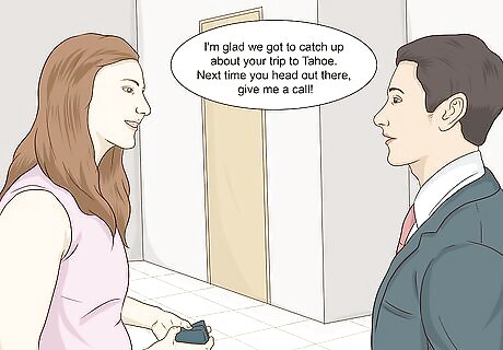 Close the conversation physically. Once the conversation is really over, you should give the person a handshake, a wave of the hand, or a playful pat on the shoulder, depending on the context of the situation. This helps send the message that you're really heading out. If you actually did like the person and would want to see them again, then you can exchange numbers or business cards. Give the person the benefit of the doubt — maybe he or she won't be so boring next time.