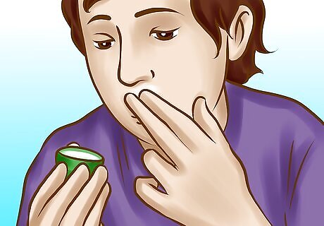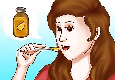 Try using menthol or honey to relieve coughing and sore throat pain. If you don't want to take over-the-counter pain cough suppressants or pain relievers, you can use natural compounds to similar effect. Consider using menthol--the active chemical in mint--to relieve your throat symptoms. Keep a package of Altoids with you, or gargle with mint-flavored mouthwash, and use the mild numbing effect of the menthol to soothe your pain. Consider using honey as a cough suppressant. Researchers have tested it against dextromethorphan and found honey even more effective. This trick may be especially useful for treating children who refuse the taste of over-the-counter cough suppressants, though you should never give honey to infants under the age of 1.