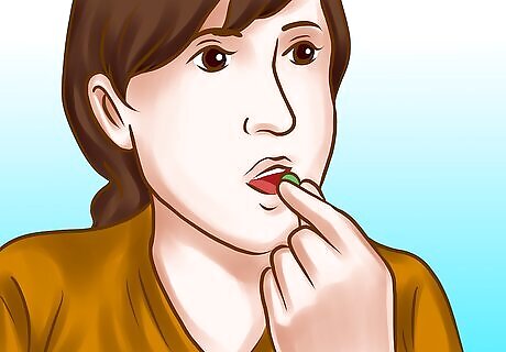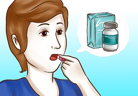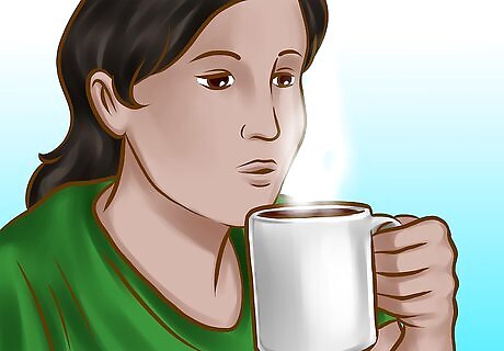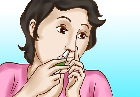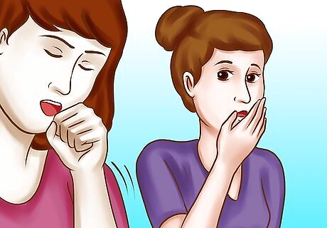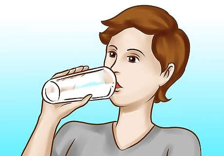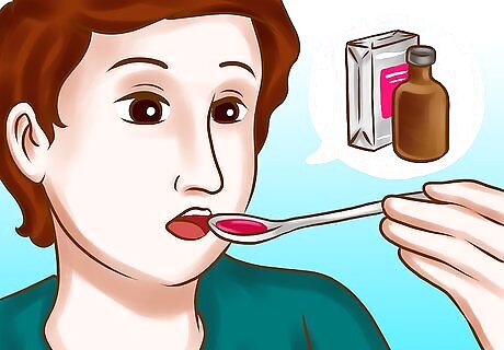 Use cough suppressants to relieve coughing. You can find over-the-counter cough syrup in most pharmacies and grocery stores, and you can find soothing cough drops--medicated and non-medicated--in the same places. Some cough syrups are designed to facilitate your function in everyday life, while some (such as Nyquil and Z-Quil, and any medicine ending in "PM") will help you sleep when you're coughing keeps you awake. Dextromethorphan is the primary active ingredient in most cough medicines. It is safe to ingest in moderation, but do not drink more than the recommended dose--especially if the bottle contains the expectorant guaifenesin--and avoid taking it if you are on antidepressants. Consider carrying cough drops around with you throughout the day. Cough syrup lasts much longer than cough drops, but cough drops tend to be herbal, non-medicated relievers that will not make you drowsy.