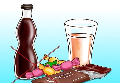 Avoid sugar. Sugar consumption weakens your immune system, and eating a lot of sugar-heavy foods may reduce your body's ability to recover from cold symptoms. There is some medical disagreement as to whether avoiding sugar during a cold can actually reduce the duration, but it is generally accepted that avoiding sugar in general is better for your immune system. People tend to get sick at times when they're eating a lot of sugar: times of stress, and during the winter months. Stress itself weakens the immune system, so the combination can be dangerous. It is best to avoid excess sugar before these times, so that you don't compound the problem. Avoid candy, soda, and other sweets. Fruit juice is sugary, but it is also typically high in Vitamin C--just try to avoid juices that have a lot of sugar added to them. Many other animals are able to convert sugar into vitamin C, but humans cannot. Sugar competes with vitamin C in the body, so high sugar consumption often results in low vitamin C concentrations.