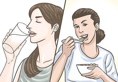 Drink plenty of water and eat something beforehand. Before heading to the plasma collective facility to donate, make sure you are fully hydrated and that you've eaten something.This will decrease the likelihood of any side effects of faintness or dizziness. Drink a 4-6 ounce glass of water, juice, or other caffeine-free liquid before you donate. Avoid consuming any alcohol within 24 hours of your donation. Eat a meal rich in protein and iron about 3 hours before you donate. Protein-rich foods include beans, cheese, eggs, nuts, beef, chicken, milk, and yogurt, among others. Iron-rich foods include beans, broccoli, chicken, ham, turkey, beef, and leafy greens. Avoid foods high in fat, like chips, pizza, or French fries.