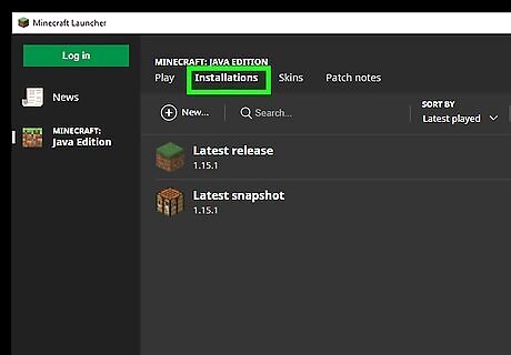 Click Installation. It's the second tab at the top of the Launcher. This displays all the Minecraft installations you have.