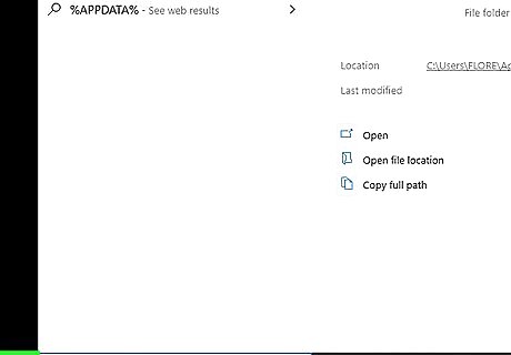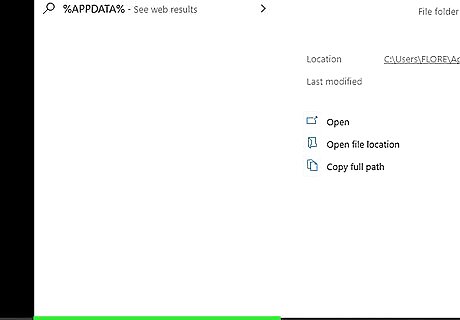 Type %APPDATA% in the search bar and press ↵ Enter. This opens the folder that contains your Minecraft install folder in Windows Explorer.