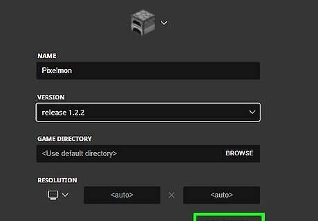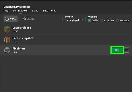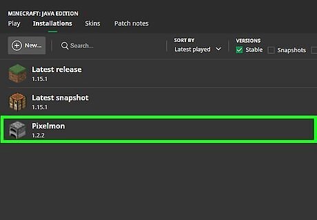 Select your Pixelmon installation. Use the drop-down menu to the right of the green "Play" button in the Minecraft launcher to select your Pixelmon installation.