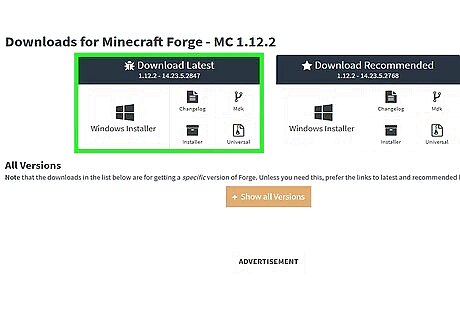 Download Minecraft forge version 1.12.2-14.23.5.2838. Minecraft Forge is used to install Minecraft Mods. You need forge 1.12.2-14.23.5.2838 to install Pixelmon. If you have a newer version of Forge, you don't need to uninstall it, but you will need to install Forge 1.12.2-14.23.5.2838 alongside your other versions of Forge. Go to https://files.minecraftforge.net/maven/net/minecraftforge/forge/index_1.12.2.html Click the orange button that says Show all version. Scroll down to "14.23.5.2838" Click Installer-win for the Windows installer, or Installer for Mac. Wait 6 seconds and click Skip' in the upper-right corner. "Warning: Adfoc.us may try to trick you into downloading malware and unneeded programs on your computer. Do not click any other buttons or offers. You will also need to temporarily disable any adblockers you have installed. Click the forge-1.12.2-14.23.5.2838 installer file in your web browser or Downloads folder. If you accidentally download any other files besides this one from the adfoc.us website, do not open them. Delete them immediately.