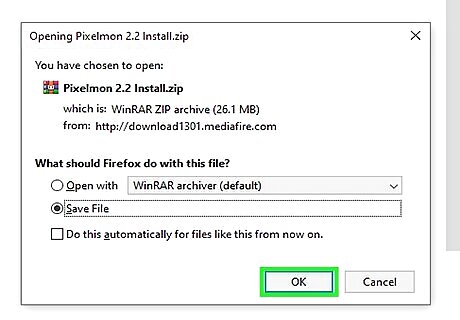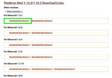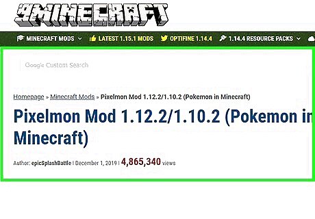 Download the Pixelmon mod from the modder's website. Use the following steps to download the Pixelmon mod: Go to https://www.9minecraft.net/pixelmon/ in a web browser. Scroll down to "For Minecraft 1.12.2"