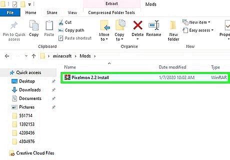 Drag and drop the Pixelmon .jar file into the "mods" folder. Once you've created or opened your mods folder, drag the Pixelmon .jar file from your desktop or Downloads folder into the mods folder.