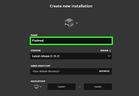 Type Pixelmon below "Name". It's the blank field at the top of the New Installation window. You can name it anything you want, but it is easiest if you just name it Pixelmon.