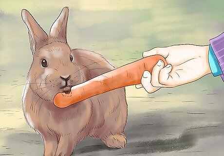 Feed your rabbit appropriately. Female rabbits will probably not want to eat immediately following the surgery. However, it is important to get your rabbit to eat something within 24 hours in order to keep them healthy and move the recovery process along. Male rabbits will usually emerge from the surgery hungry and looking to eat. Be sure they have food and water waiting for them if you’re able to take them home. Provide your rabbit with some of its favorite foods in order to inspire its appetite. Not eating can lead to serious complications with the gut shutting down. Contact your vet immediately if you're concerned about your rabbit's appetite.
