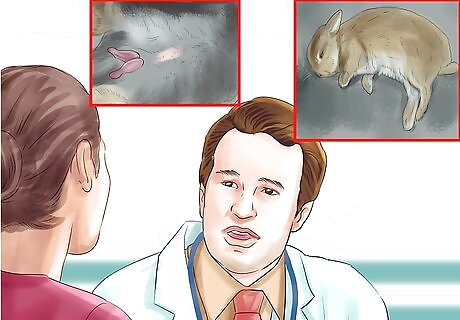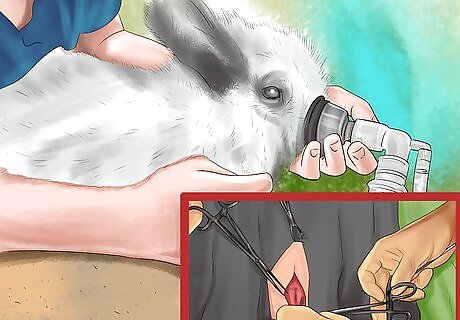Monitor the incision. Look for signs of infection. It is normal for the scrotum to remain swollen for one or two weeks in male rabbits. Any redness, swelling, or yellowish crust or pus at the site of the incision beyond two weeks, however, should be cause for alarm. Additionally, handle your bunny gently during this time to avoid disturbing the sutures at the incision site. Many vets use special sutures that cannot easily be removed by the rabbit, but if you see your rabbit has removed its sutures, contact your vet so they can bandage it back up. If your rabbit’s incision becomes infected, let your vet know immediately. You will then need an antibiotic prescription for your pet.