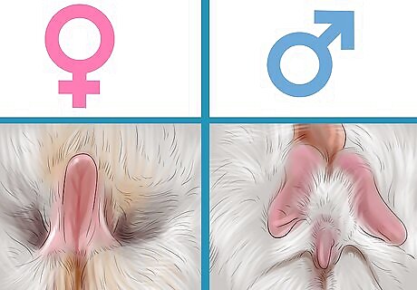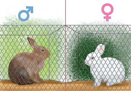 Identify your rabbit’s sex. If your pet is female, it will need to be spayed. If it is male, it will need to be neutered. In order to identify your rabbit’s sex, cradle your bunny gently in your arms. It should be sitting in a position where its belly is facing up, and its back is nestled in the crook of your arm. Hold the bunny steady and look at the region toward the bottom of its belly between its back legs. Female rabbits will have a small prepuce, a protuberance that covers the vulva. Pressing down gently on the side of the prepuce facing you will reveal the vulva. Male rabbits are most easily identified by the presence of testicles -- two hairless, round sacs, usually pink or gray in color, and crisscrossed by a network of blood vessels.