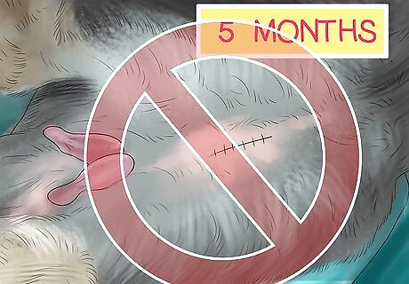Don’t spay or neuter too early. You can neuter or spay your rabbit once it reaches the age of about five months old. Some female rabbits need to wait a bit longer and can only be spayed after they reach six months of age. Your vet will tell you if your pet is an acceptable candidate for spaying or neutering. Rabbits younger than five months (their age of sexual maturity) cannot be safely operated on.