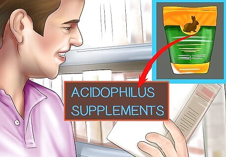 Find out how to provide pre-surgical care. Before spaying or neutering, most vets recommend that you keep your pet’s diet stable. You might administer acidophilus to your rabbit. Acidophilus a probiotic, a bacterial supplement that can aid digestion and minimize risk of infections. Check your local pet store to find rabbit-friendly acidophilus supplements if you’re interested. Follow manufacturer directions . Some people are surprised that they do no need to withhold food before their rabbit get anesthetized. But because rabbits cannot vomit, there is no need to disrupt their eating schedule.