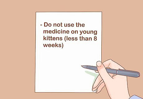 Follow your vet’s instructions closely. All of these medications will have age and size specifications that you’ll need to follow. For example, most medicines cannot be used on young kittens (less than 8 weeks) or kittens under 2.2. lbs.