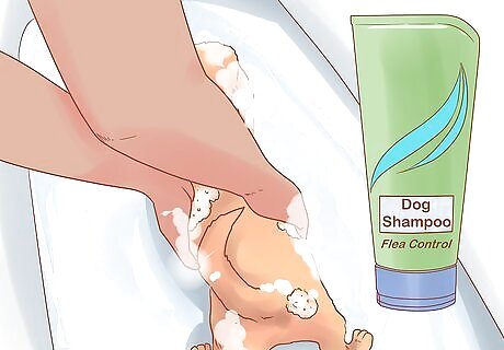 Call your vet. They'll either insist you come in for a check-up, prescribe you a medication over the phone, or direct you to an over-the-counter medication sold at most pets supply stores. There are a variety of medications — most of which use praziquantel — to combat these little wormy parasites. The most common medications are Droncit, Drontal Plus, and Tradewinds Tapeworm Tabs. These can be found at vet clinics and some pet superstores.Your vet will know exactly which treatment will best eliminate tapeworms. Depending on your pet, your pet’s size, and your pet’s age, your vet will take differed medicinal approaches. If you purchase a dewormer at a pet supply store, be sure to follow the directions methodically. Most treatments are given orally, but there are injections and topical treatments too.