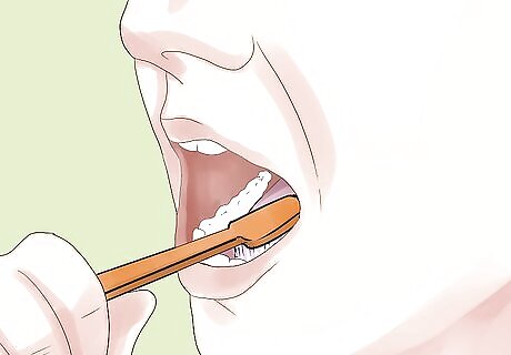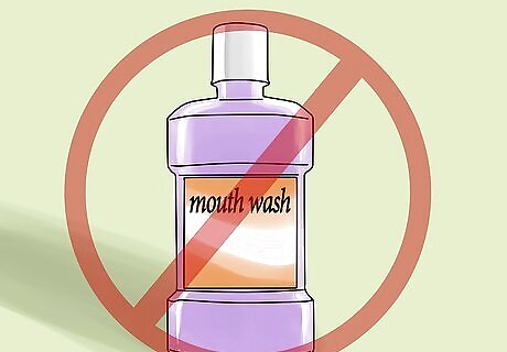 Refrain from using mouthwash, breath sprays or breath mints. These products tend to upset the normal microorganism balance in your mouth. Remember that your body contains a host of good microorganisms that effectively serve to fight "bad" ones. Harming these may pave the way for the bad ones to take over. Instead, you can use a saline solution to rinse your mouth. You can create a saline solution by stirring half a spoon of salt into a glass of warm water.