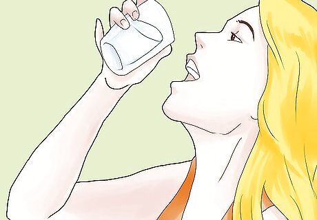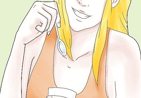 Swish with apple cider vinegar. Take a little bit of apple cider vinegar, dilute it with about a half part of distilled water, and swish it in your mouth for several minutes. Another option is to mix one tablespoon of apple cider vinegar in a full 8 ounces of water and drink before every meal. The vinegar is supposed to fight off intestinal yeast overgrowth that sometimes contributes to oral thrush. Some people find this method impossible because of the strong taste associated with the vinegar. You might also experience stomach gurgling when you start the treatment, so don’t start this treatment right before a meeting or another situation where you may feel embarrassed.