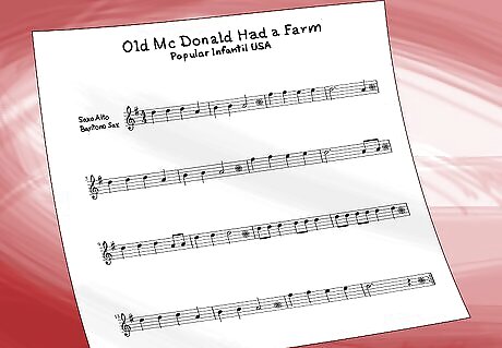 Learn how to read music. To learn classic saxophone music or play with other musicians you'll need to learn sheet music. Sheet music is comprised of notes arranged on five lines called the staff. Sheet music will also designate the register in the form of the treble clef or bass clef, as well as the beats per minute in a song. Notes on the lines in higher registers from top to bottom are, F, D, G, B, and E. Notes in between the lines in lower registers on the staff from top to bottom are, E, C, A, and F.