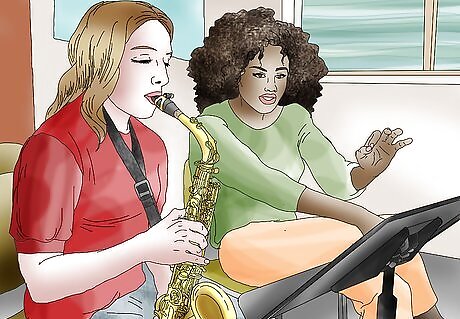Take music lessons or join a band. The best way to learn how to play saxophone is to take lessons from an instructor who can show you how to play. An instructor will be able to teach you music theory and can give you tips on how to improve your personal performance.