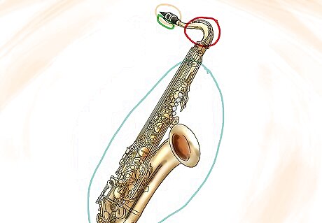 Identify all the parts of your saxophone. Before you assemble your saxophone, you need to be able to identify all of the parts. The main parts of the sax are the body, neck, mouthpiece, reed, and ligature. Your reed goes in your mouthpiece and is the part of the saxophone you blow into to play it. The neck of your sax is the part that connects to the mouthpiece and to the main body of your saxophone. The body of your saxophone is the large part that contains all the buttons you hold in order to play different notes. The ligature is a metal sheath that fits over your mouthpiece and keeps your reed in place. While you assemble your saxophone, refrain from pushing or pulling on parts because they may bend.