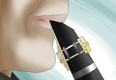Put your teeth on the top of the reed and curl your bottom lip. Curl your bottom lip over your teeth and put your mouth halfway over the reed. To get the best sound you want to seal your lips to the mouthpiece when you blow. Make sure to keep in mind that air can escape from the side of your mouth as well.