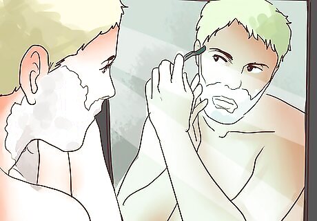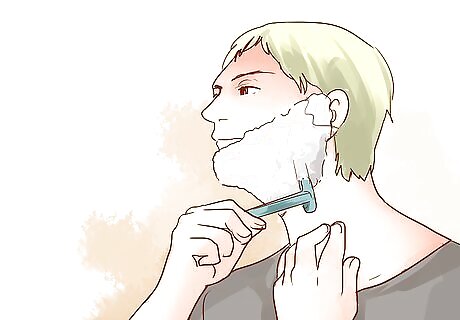 Finish with a refreshing face wash. When you're satisfied with your stubble, remove stray hairs from your face and leave yourself feeling great with a cold water rinse. This will also close your pores and soothe your skin, which is nice if you have delicate skin that is easily irritated by shaving. You may also want to use a gentle non-scented lotion at this point to moisturize your skin and keep it feeling soft. Refrain if you cut yourself shaving — lotion in a cut can seriously sting.