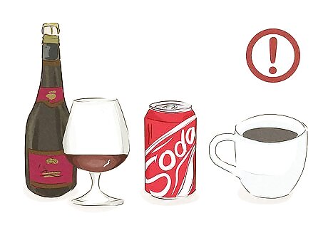 Limit your consumption of foods or beverages that stain your teeth. The best way to keep your teeth white is prevent them from getting stained in the first place. Common items that stain your teeth are coffee (especially black coffee), red wine, and dark soda. Have these drinks less often to avoid staining your teeth. Smoking also stains your teeth. Quit smoking or don’t start in the first place. If you’re drinking a cold, dark liquid, try using a straw to keep it away from your teeth.