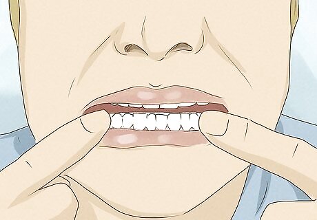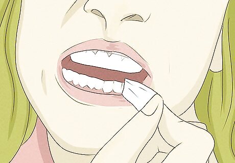 Get medical care if your gums turn white or bleed. Whitening solutions can cause chemical burns on your gums which can make them appear white or cause them to be. This is usually harmless and clears up on its own, but you should still get it checked out to make sure there isn’t heavy damage. In the meantime, stop using any products that caused this. The tissue should return to normal after a few days.