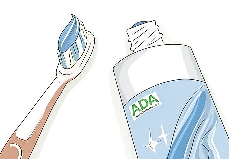 Use an ADA-approved whitening toothpaste. Some products on the market are designed for teeth whitening. Look for toothpastes containing baking soda or hydrogen peroxide, 2 main ingredients for whitening. Remember to check for the ADA seal and brush with the product like you normally would. Whitening toothpastes don’t produce immediate results. It’ll take a few weeks of brushing to scrub away tooth stains. Brushing harder won’t make your teeth whiter. In fact, this could damage your teeth because you’ll scrub away the enamel.