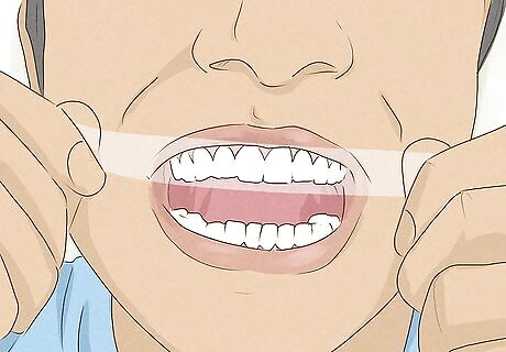 Brush and floss your teeth if the instructions tell you to. This removes any buildup on your teeth that could block the whitening gel or stop the strips from sticking properly. Brush, floss, and rinse your teeth normally before attaching the strips. Not all whitening strips instruct you to brush your teeth first. Always check the instructions before you use them.
