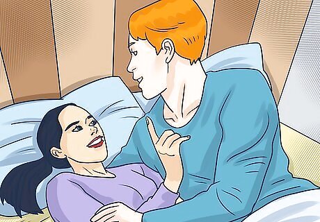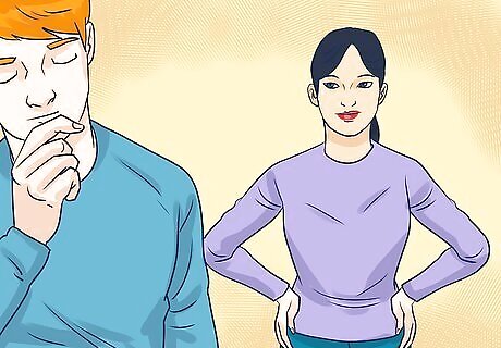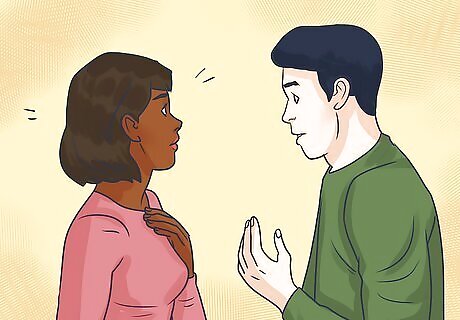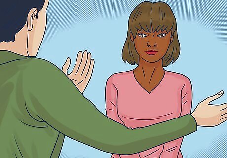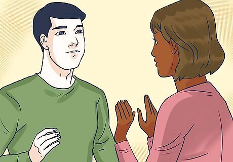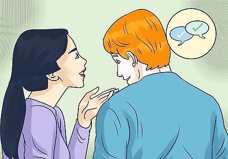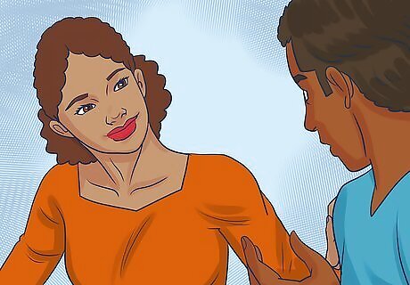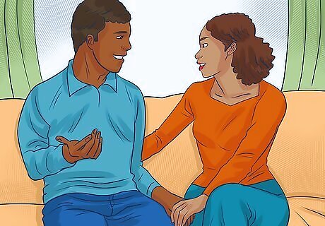 Lean forward and uncross your arms. You can also use your body language to help make your guy feel heard when he is feeling upset. As simple as this sounds, it can make a huge difference in a conversation. Body posture like crossed arms or leaning away, signals disagreement or distance to the other person. Instead uncross your arms and lean towards your partner which signals your interest and engagement. You can also try tilting your head while you are looking at them which can show sensitivity and engagement.