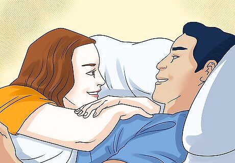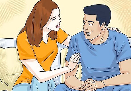 Touch him. Men, like women, are often very guarded with their feelings, and don't want to look weak or vulnerable. So if your guy comes to you venting about his bad day, a fear he has, or something else that could be perceived as a vulnerability, touch him as he talks to you so that he'll know you're sympathetic to what he's going through. Soon, he'll know that when he has an issue or is feeling vulnerable, he can trust you with his feelings and come to you for comfort. Touch his hand or arm. Sit close to him so your legs are touching. Rub his neck or back.