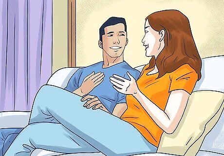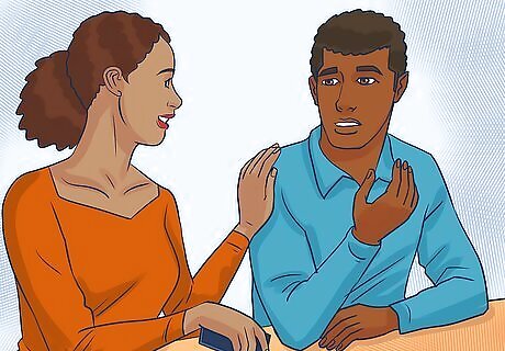 Get engaged with how he's feeling. Try to step outside of yourself for a little bit and consider your partner. Give your guy comforting feedback about what he's saying when he talks to you. Take the time to acknowledge his emotions, even if you don't understand them. If you see he is anxious or if he's showing you he's upset say, “I can see that this has you really worked up. Do you want to talk about it?” or “I would be really upset, too.” Phrases like, "I'm sorry this is happening to you," or “I can't imagine how that feels,” will make him feel comfortable and let him know that he has nothing to fear by confiding in you.