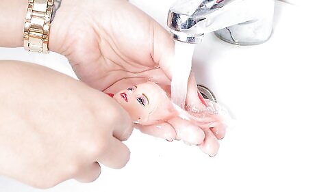 Dip a cotton ball in the body soap and rub it on your doll's body, making sure you get all the dirt off and clean her very well.