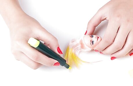 Colour her hair in with a washable marker. This will only last for a day or two. You can rinse it off later with soap and hot water. To colour it permanently, use a permanent marker. Make sure you want to do it though because it won't come off once you've done it.
