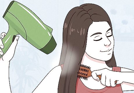 Leave the conditioner in your hair and blow dry one section at a time. After you finish each section, let it cool for 5-10 minutes before blow drying the next section. By concentrating on one section at a time, you are allowing those hair follicles to open and soak up the deep conditioner. Letting the section of hair cool immediately after blow drying will seal the moisture into your hair. Once you've dried all of your hair, allow it to completely cool before you moving on to the stripping process.