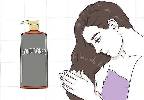 Slather a deep conditioning product on your freshly washed hair. Towel dry your hair and then drench it in the conditioner. The best product to use is cholesterol, which is sold in jars and can be easily found in most beauty supply stores. If you can't get that, use the strongest deep conditioner you can find. Run a wide-toothed comb through your mane to untangle it and distribute the conditioner well. This step is only necessary if your hair is currently dyed black. If black is your natural hair color, you can go straight to the bleaching process.
