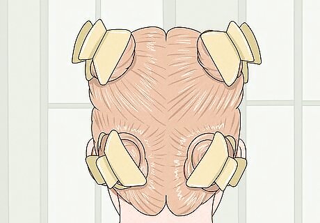 Divide and clip your hair up into 4 sections. Working in sections will make the process much easier. Middle-part your hair at the crown from forehead to neck to get your first 2 sections, then clip them up. Part the remaining lower portion of your hair from ear to ear and clip those up, too. You should have a friend or family member helping you with the rest of the bleaching process. You'll end up with better results and the process will be far less stressful and taxing if you have some help.