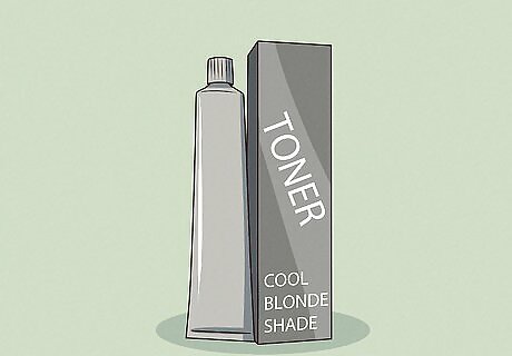 Choose a toner in a cool blonde shade to neutralize any warmth. If your hair is light yellow after bleaching, you'll need a light ash, silver or pearl shade of toner. Pearl blonde toner is usually the preferred choice, but choose the shade that is 1 shade lighter than your current hair color. The cool tones will counteract the warmth and prevent brassiness. If you have short and/or very fine hair, you'll only need 1 box of toner. For those with thick, long hair, you'll need to get 2 boxes. If possible, use a high quality salon brand of toner for best results.